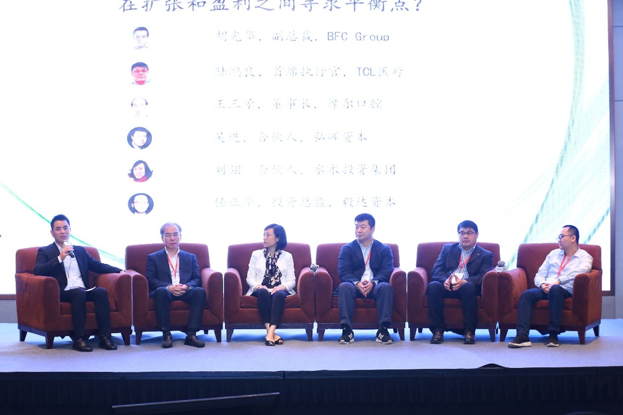 第五场嘉宾讨论主题围绕“医疗服务:连锁经营的模式如何在扩张和盈利之间寻求平衡点?”